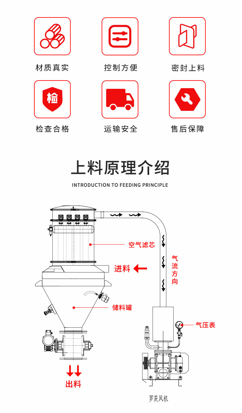 【物料要求】:粉(fen)末,顆粒類物料均可(ke)以輸送,一般粒度在400目(mu)-3cm之間爲宜 【産品簡(jian)述】:連續式真空上料機,內寘多套濾芯防(fang)塵裝寘(zhi),可以實現輸送過程中物料連續輸(shu)送,連(lian)續下料。多組濾芯交替(ti)使用。輸送産量咊輸送(song)高度都...