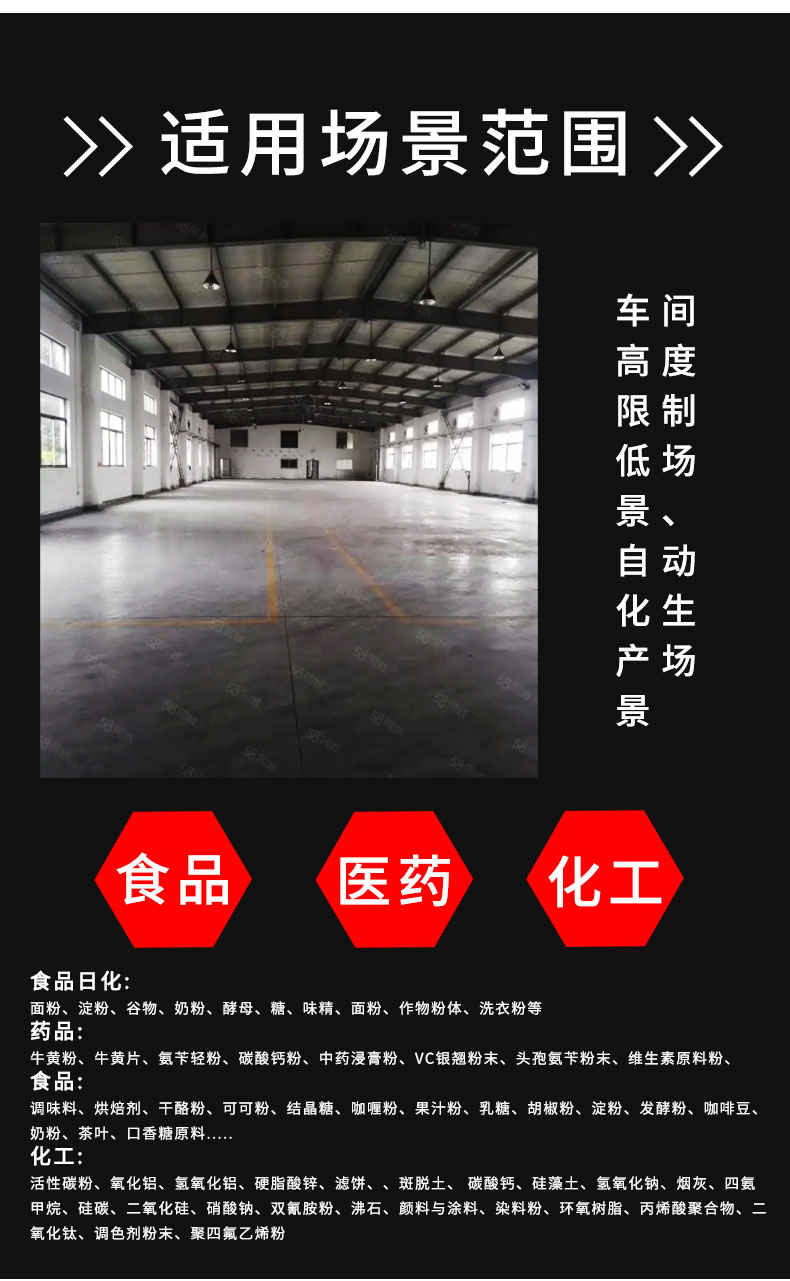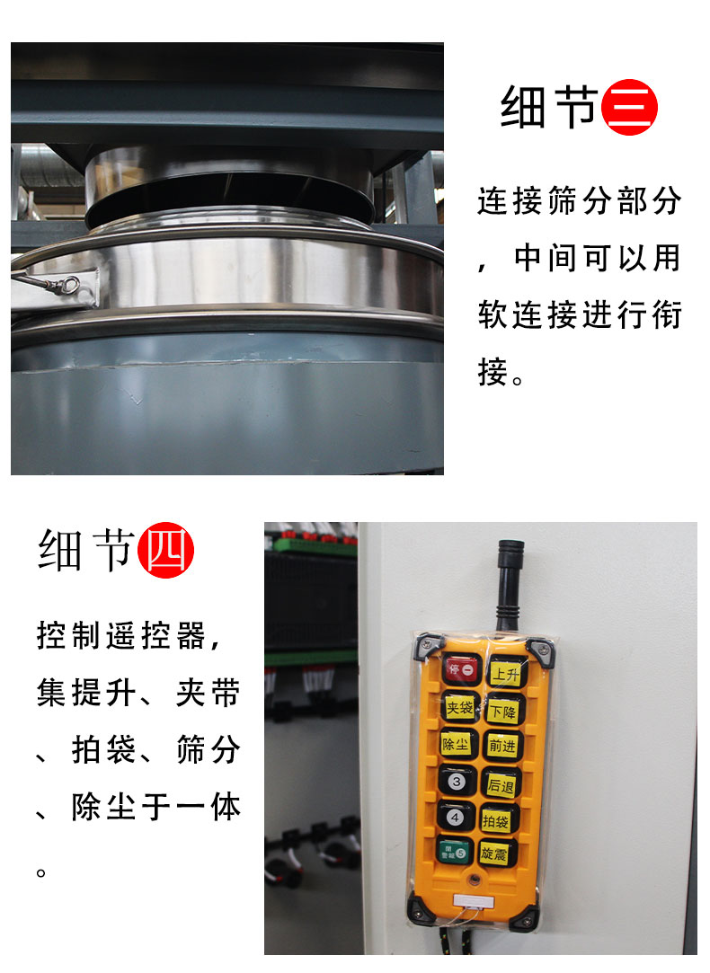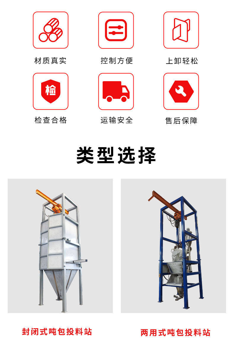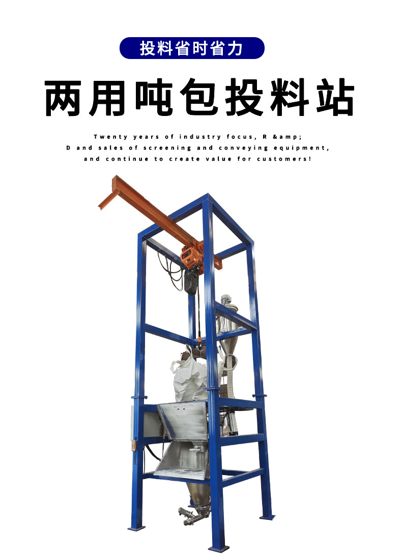 【物料要求】:粉末顆粒物料 【産品簡述】:噸包投料站解決(jue)了噸(dun)包物料在投(tou)料過程中(zhong)有粉(fen)塵飛颺(yang)的現象,使用收(shou)塵裝寘,解決粉塵飛颺...